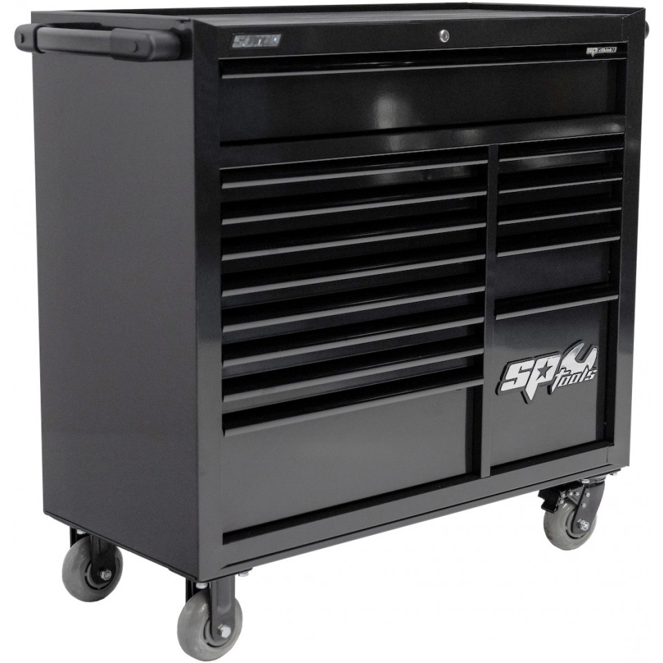 The Custom Series Roller cabinets from SP Tools are the tool carts you can always count on. With their sturdy construction and famous American appearance and quality, these carts are the perfect partner for your workshop. The heavy double-wall construction allows the tool carts to have a top load capacity of up to 200 kg.